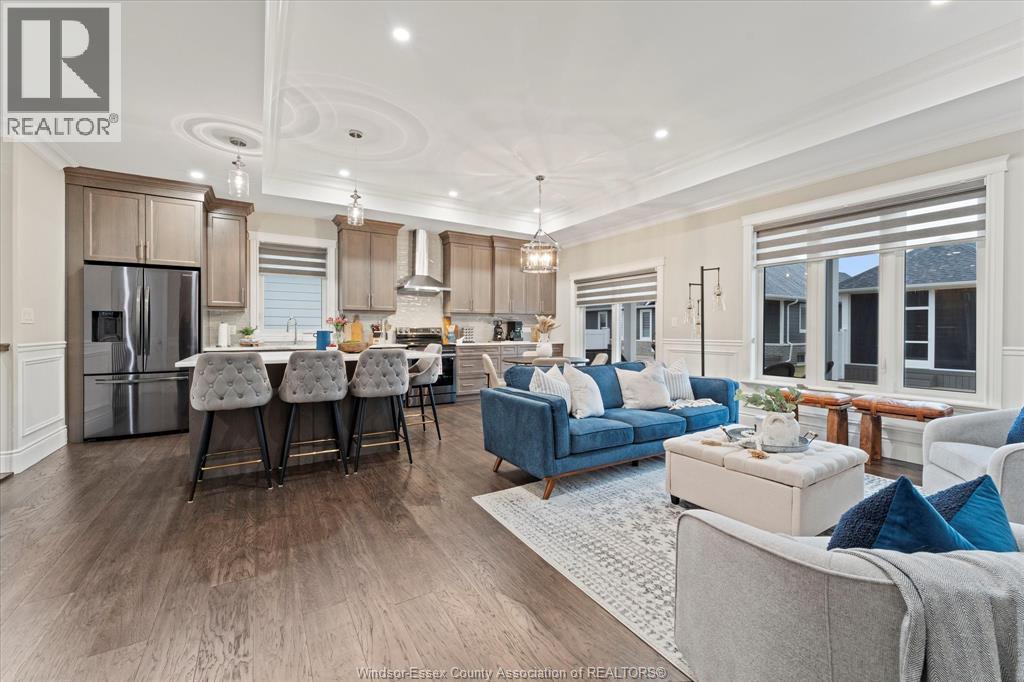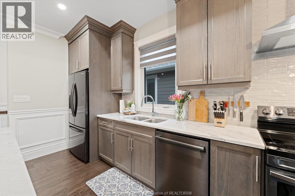 Welcome to 387 Caserta, fully finished 5-bed, 3-bath, built by Lakeland Homes (2021), right across from St Anne's High School. Walking through the front door, you're greeted with an elegant Wayne Scotting design throughout, an open living room and kitchen with tons of natural light, recessed ceiling, a built-in fireplace console, an upgraded kitchen with quartz countertops & a separate island. Sliding glass door opens to a covered back porch perfect for your morning coffee. Main floor laundry room with 2 bedrooms and 2 full bathrooms. Master bedroom en-suite with a double-bowl vanity and walk-in closet. The finished lower level features 3 additional bedrooms, full bathroom, and a large, cozy living room. Energy efficient with upgraded HRV & Tankless HWT. Double-car attached garage. All appliances included. Walking distance to St Anne's Highschool, River Ridge Park, Atlas Tube Recreation Centre, with easy driving to Detroit River, E.C Row Expressway shopping centres and retail. (id:4555)